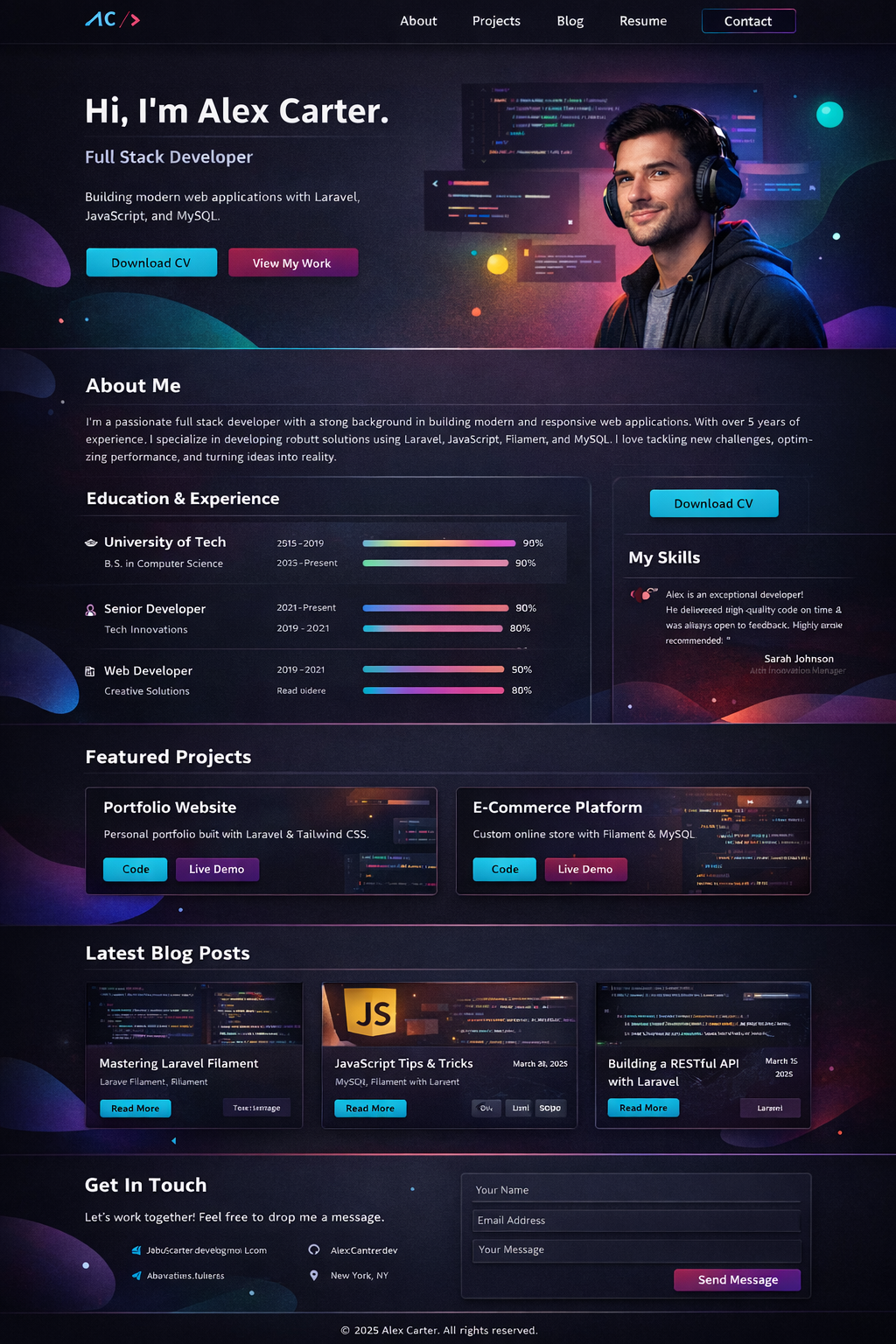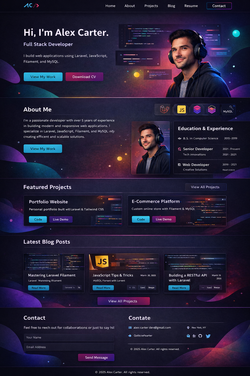 Designed modern UI, built reusable Tailwind components, optimized performance, and implemented interactive animations for production projects.